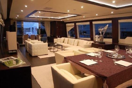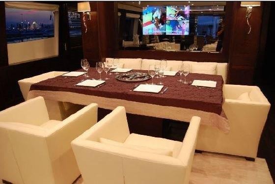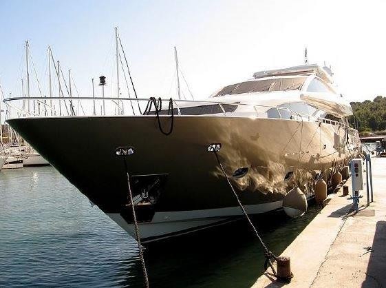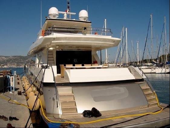 Superbe Méga Yacht état neuf, de marque Guy Couach, 37m, 400 heures de navigation. 5 cabines.